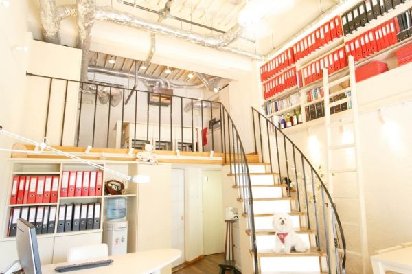 ロフトと階段が印象的な店内