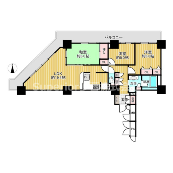 - バルコニー面積